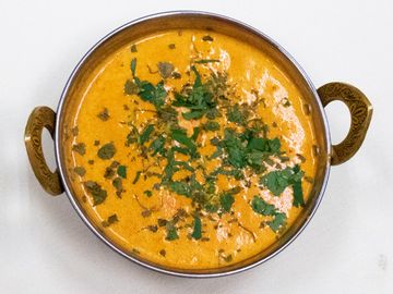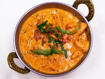 Boneless chicken tikka cooked with fresh tomatoes, cream, spices nuts and butter.
