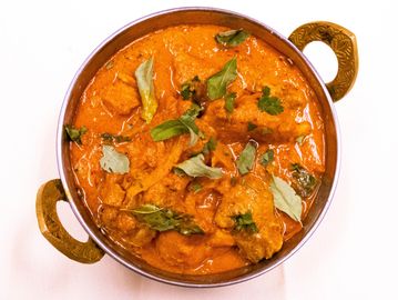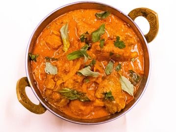 Boneless chicken cooked with onions, tomatoes, nuts, spices and coconut milk.