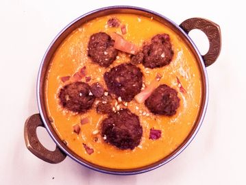 Vegetable balls deep fried and cooked with onions, tomatoes, cashews, cream and spices.