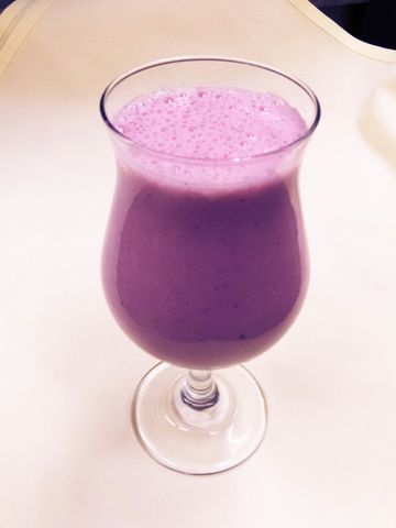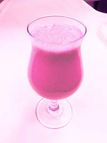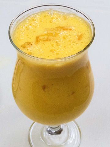 Homemade yogurt blended with buttermilk and Indian mangoes.