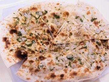 Traditional Indian bread baked in a Tandoori oven with onions and herbs.