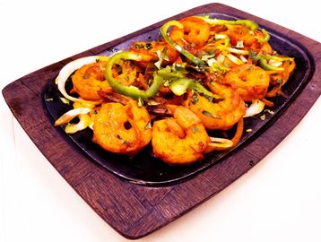 Jumbo shrimp flavored in spices and cooked in Tandoori oven.