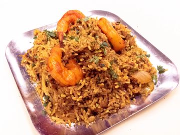 Aromatic basmati rice with shrimp cooked with herbs, butter and spices.