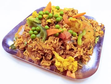 Aromatic basmati rice cooked with mixed vegetables, herbs, butter and spices.