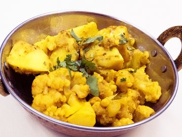 Cauliflower and potatoes cooked with mild spices.