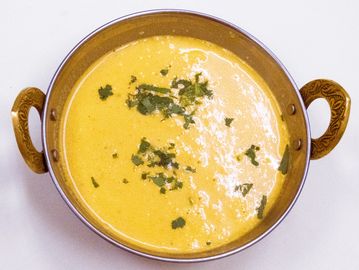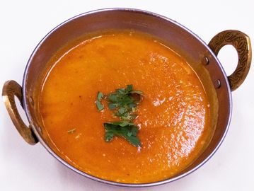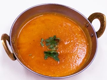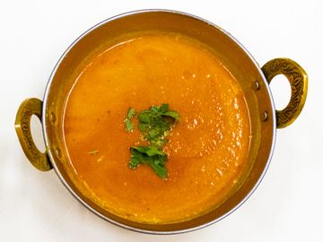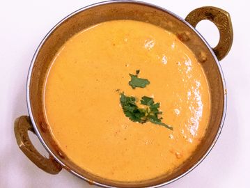 Lentils cooked with onions, tomatoes to a thick sauce with mild spices.