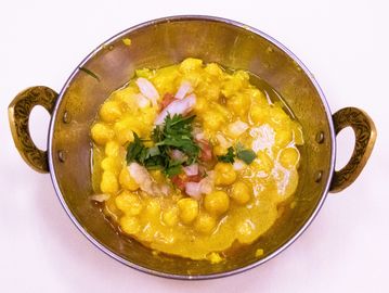 Garbanzo beans cooked with onion, tomatoes and mild spices.