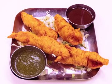 Mixed vegetables dipped in mildly spiced batter and deep fried.