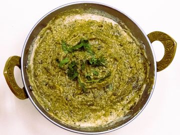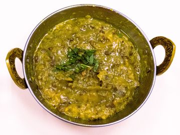Boneless lamb cooked with spinach, onions, spices and cream.