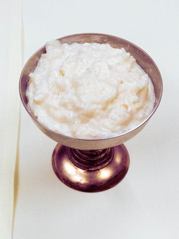 Basmati rice pudding made with milk and garnished with nuts and raisins.