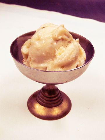 Homemade ice cream with pistachios, cashews and cardamom.