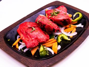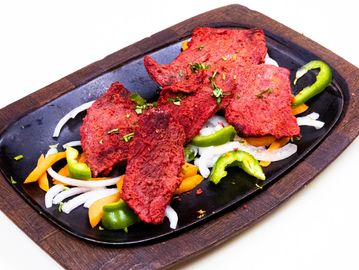 Boneless chicken breast meat marinated in spices and cooked in Tandoori oven.