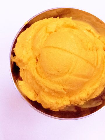 Homemade ice cream with Indian mangoes.