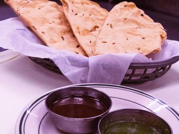 Multi-layered Indian style whole wheat bread baked in a Tandoori oven.
