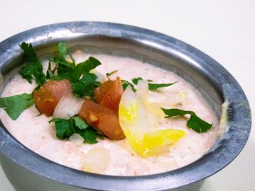 Homemade yogurt with tomatoes, onions, carrots and cilantro.