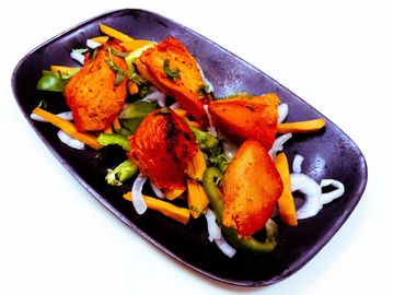 In this ancient Indian method of coking, meat is first marinated with special spices and yogurt, then cooked in the imported Indian tandoori clay oven and served on a sizzling platter with sauteed onions, carrots and bell peppers